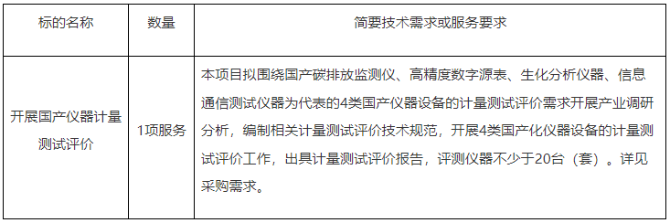 項目名稱:開展國產儀器計量測試評價