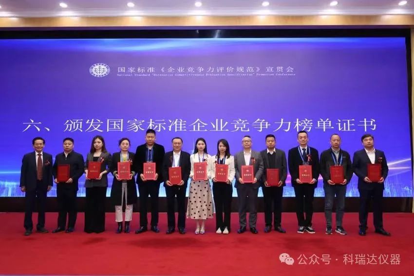 會議期間,科瑞達儀器憑借科技創(chuàng)新能力和品牌影響力,榮獲“全國企業(yè)(科技創(chuàng)新)競爭力5A級·標桿單位”及“全國企業(yè)(品牌)競爭力5A級·標桿單位”兩項榮譽稱號,曹總代表企業(yè)領(lǐng)取國家標準企業(yè)競爭力榜單證書。