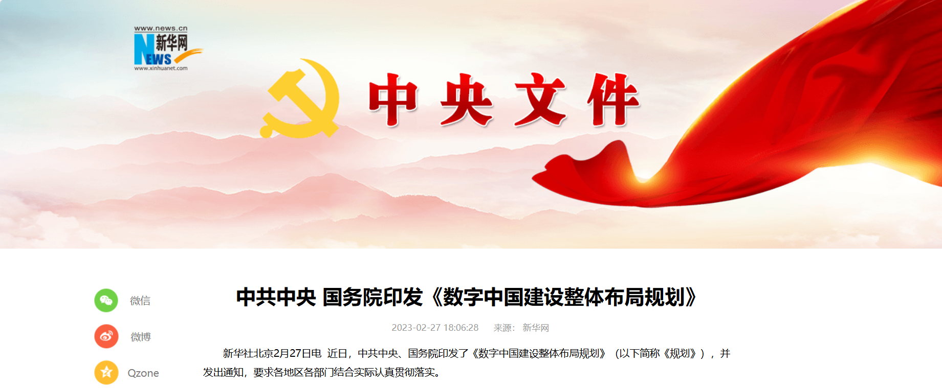 2023年《數(shù)字中國建設(shè)整體布局規(guī)劃》出臺