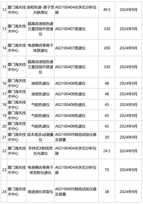 廈門(mén)海關(guān)技術(shù)中心本次共計(jì)預(yù)算2748萬(wàn),預(yù)采購(gòu)實(shí)時(shí)定量PCR儀、多功能凝膠成像系統(tǒng)、氣相色譜三重四級(jí)桿質(zhì)譜儀、電感耦合等離子體質(zhì)譜儀等。