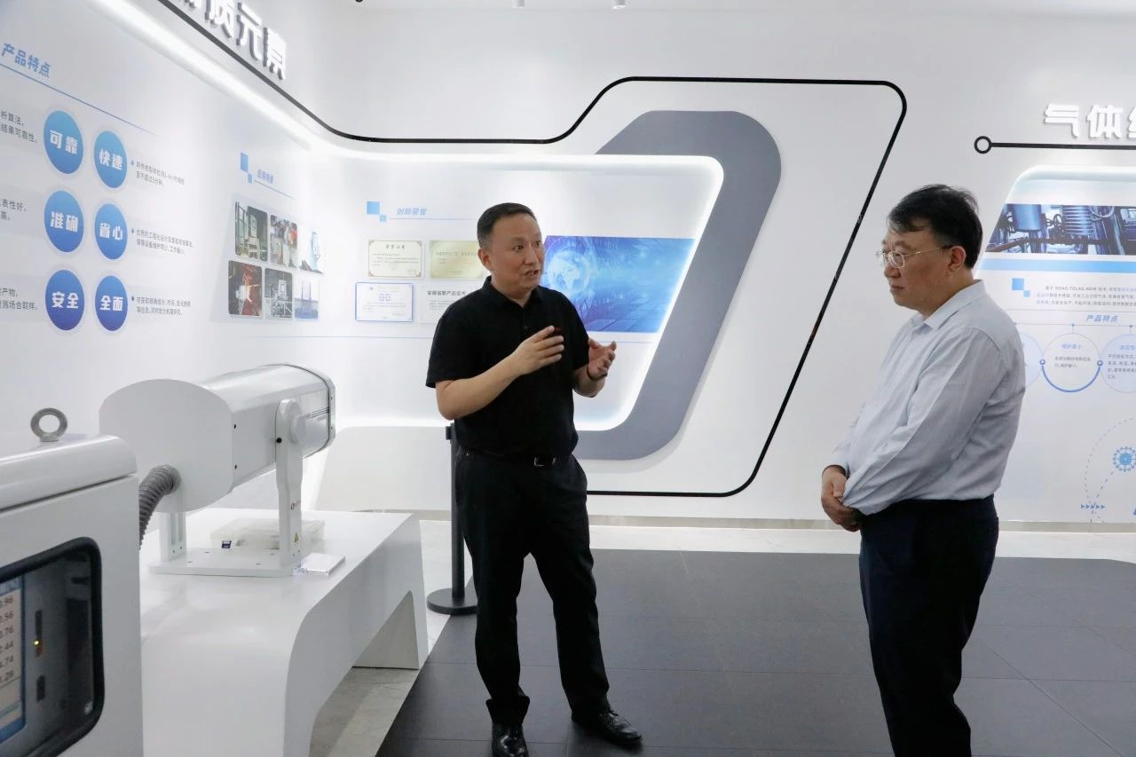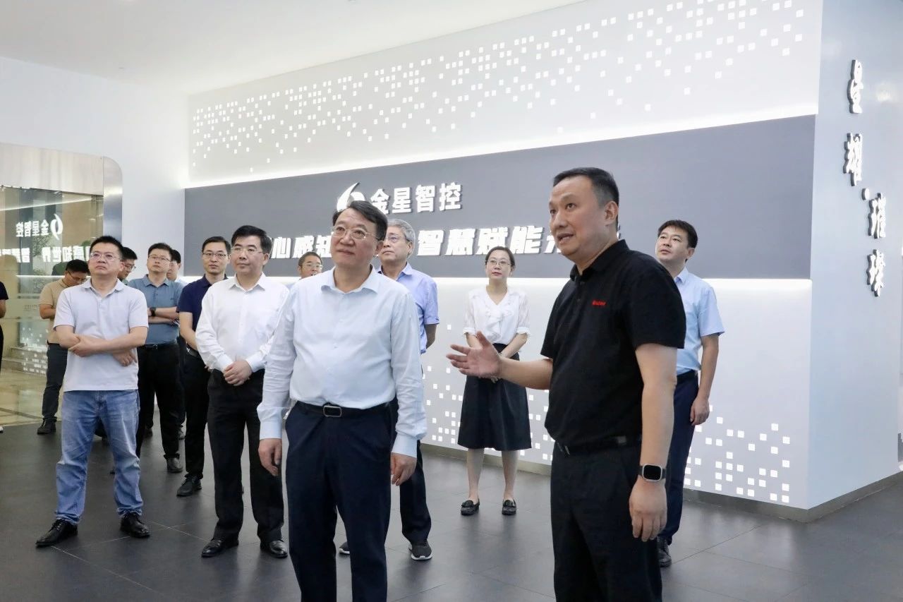 羅云峰市長一行參觀了金星智控展示中心,深入考察了企業(yè)科研攻關(guān)、成果轉(zhuǎn)化及市場拓展等情況,面對面向企業(yè)宣講了黨的二十屆三中全會精神,并與吳華峰董事長親切交流。