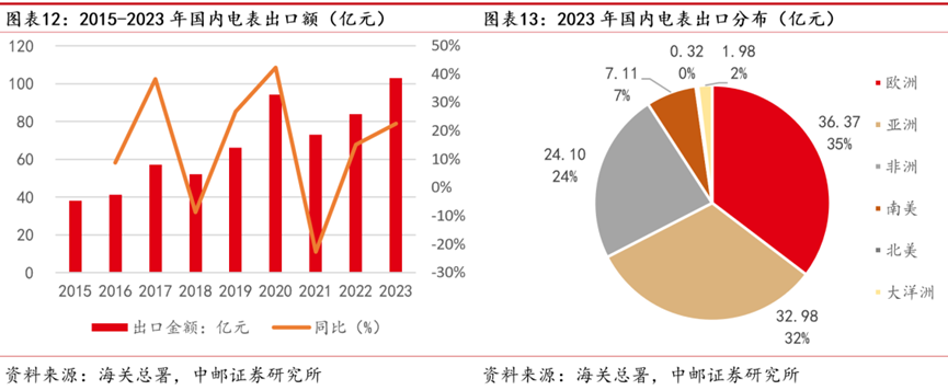 2023年電表出口金額24億元(+60%),2015-2023CAGR 11%