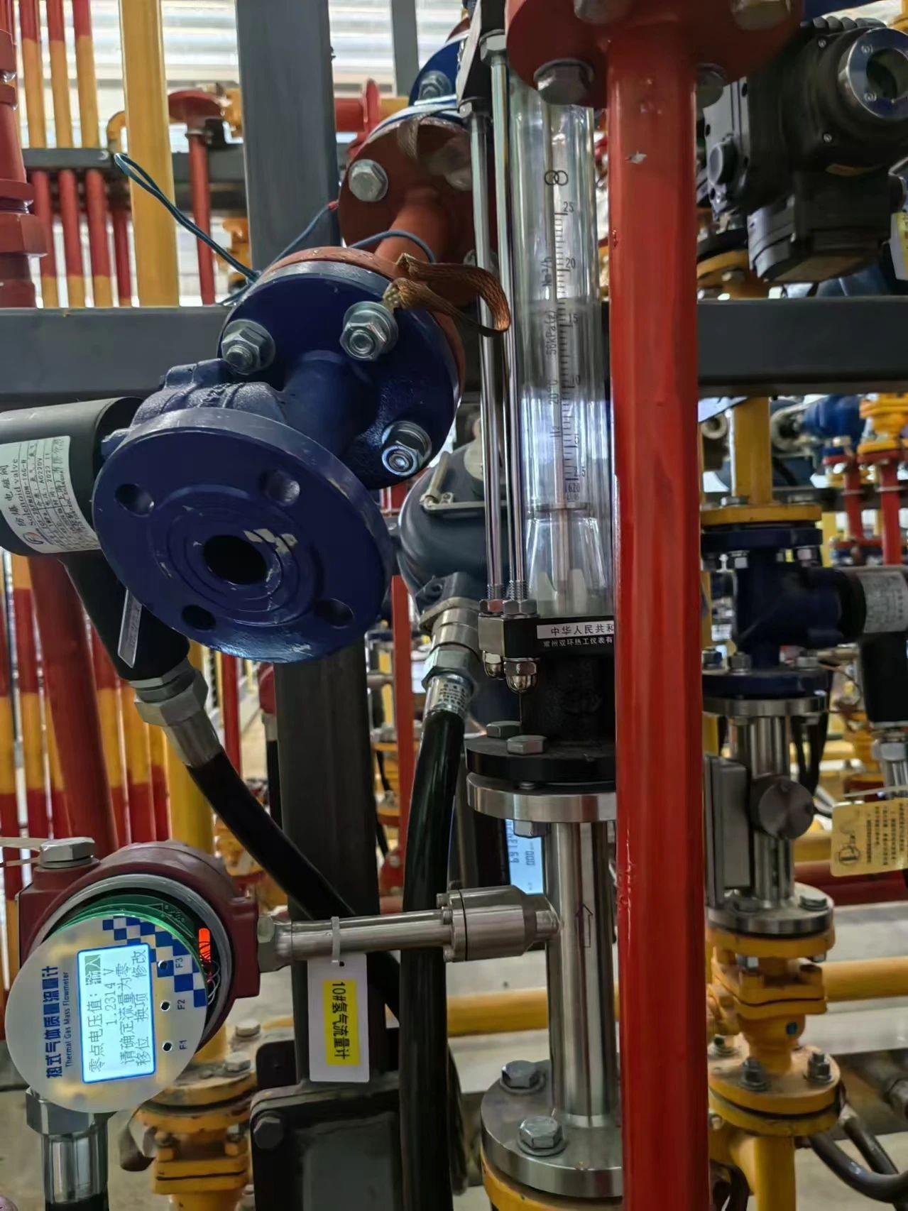 氮氣測量采用1.5%精度的LWQ系列氣體渦輪流量計控制流量,因現場垂直安裝,選無注油表體。氫氣測量采用管道式SFMT系列熱式氣體質量流量計。