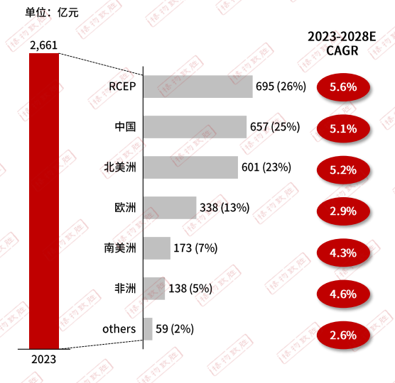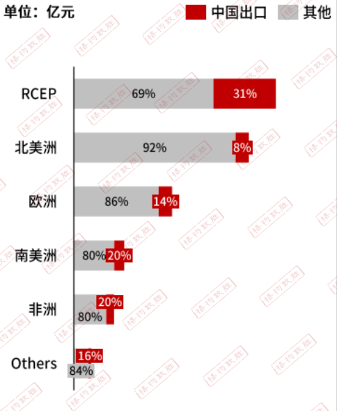 ✦•RCEP國家的變壓器市場份額最高,占全球的26%,RCEP國家中尤其是東南亞國家經(jīng)濟(jì)發(fā)展速度較快,電力基建需求高,當(dāng)?shù)貙ψ儔浩鳟a(chǎn)品的需求較高;