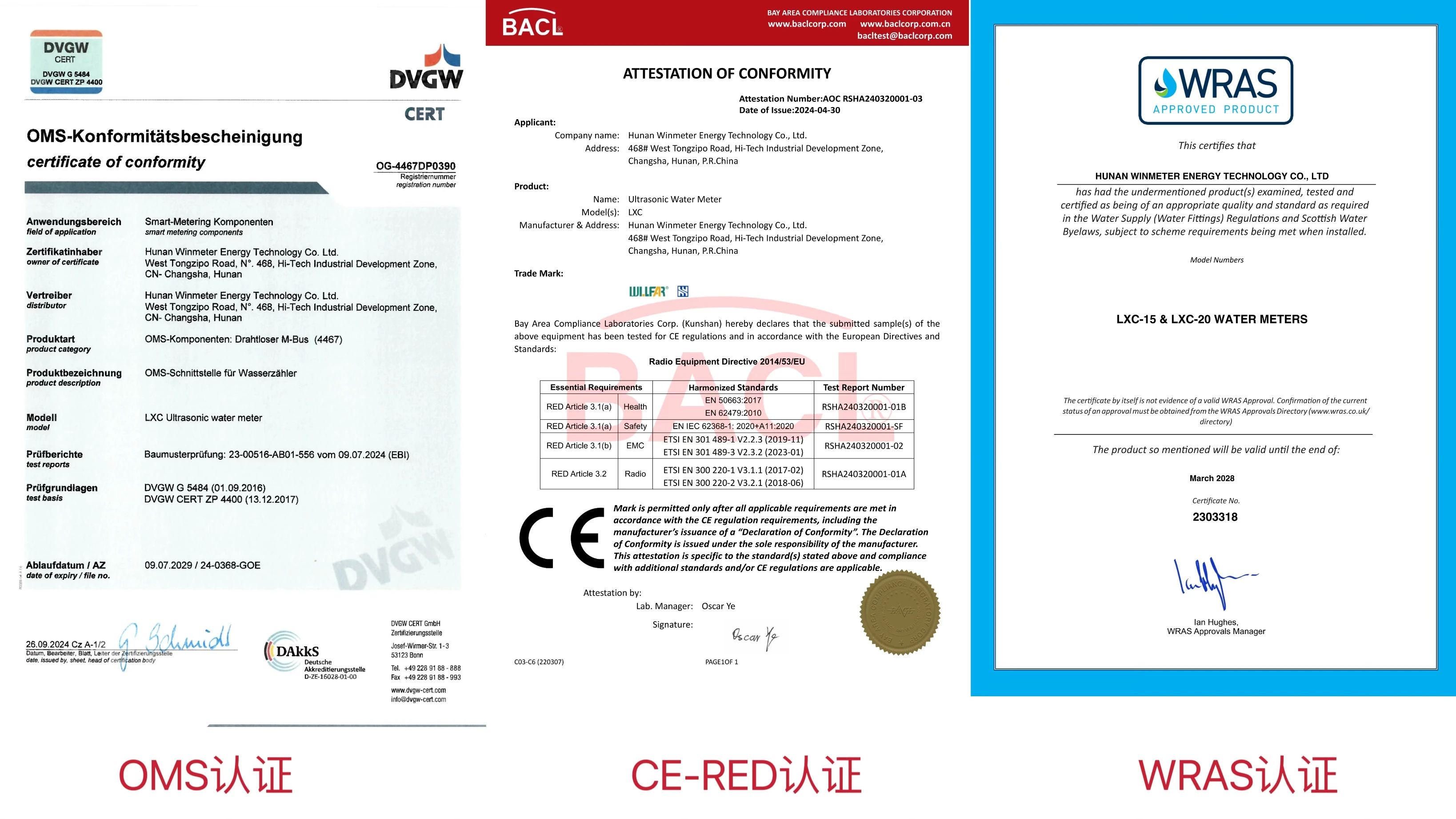 威銘超聲波智能水表獲多項國際權威認證,率先全面契合
