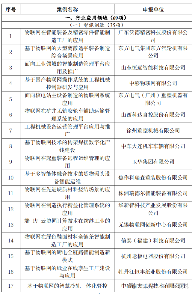 附件:2024年物聯(lián)網(wǎng)賦能行業(yè)發(fā)展典型案例名單