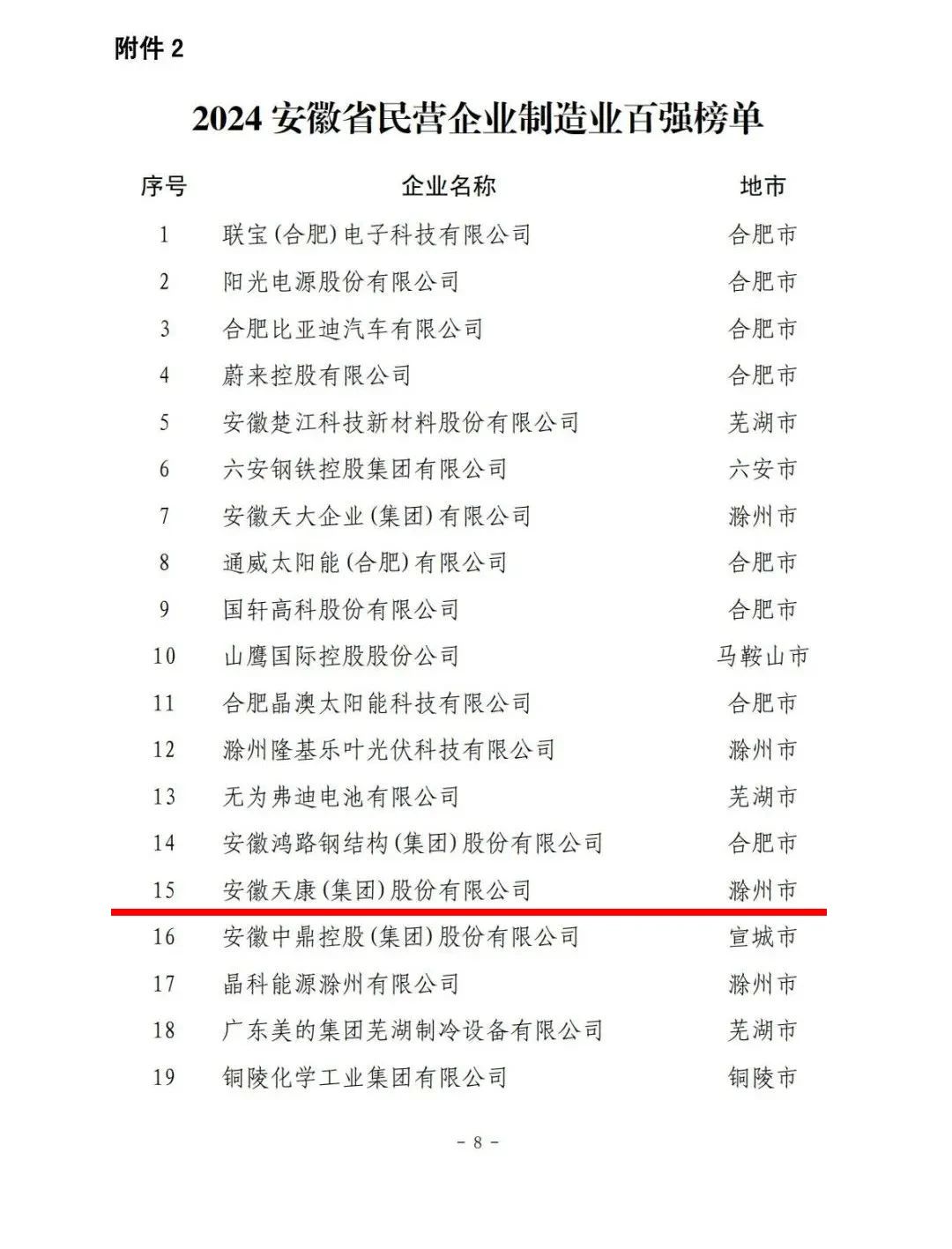 11月29日上午,2024安徽省民營企業(yè)百強發(fā)布會在合肥舉行。安徽省工商聯(lián)、安徽省工信廳、安徽省市場監(jiān)管局聯(lián)合發(fā)布2024安徽省民營企業(yè)營收百強、制造業(yè)百強和服務業(yè)百強榜單。安徽天康集團憑借出色的發(fā)展成績榮列營收百強第19位,制造業(yè)百強第15位。