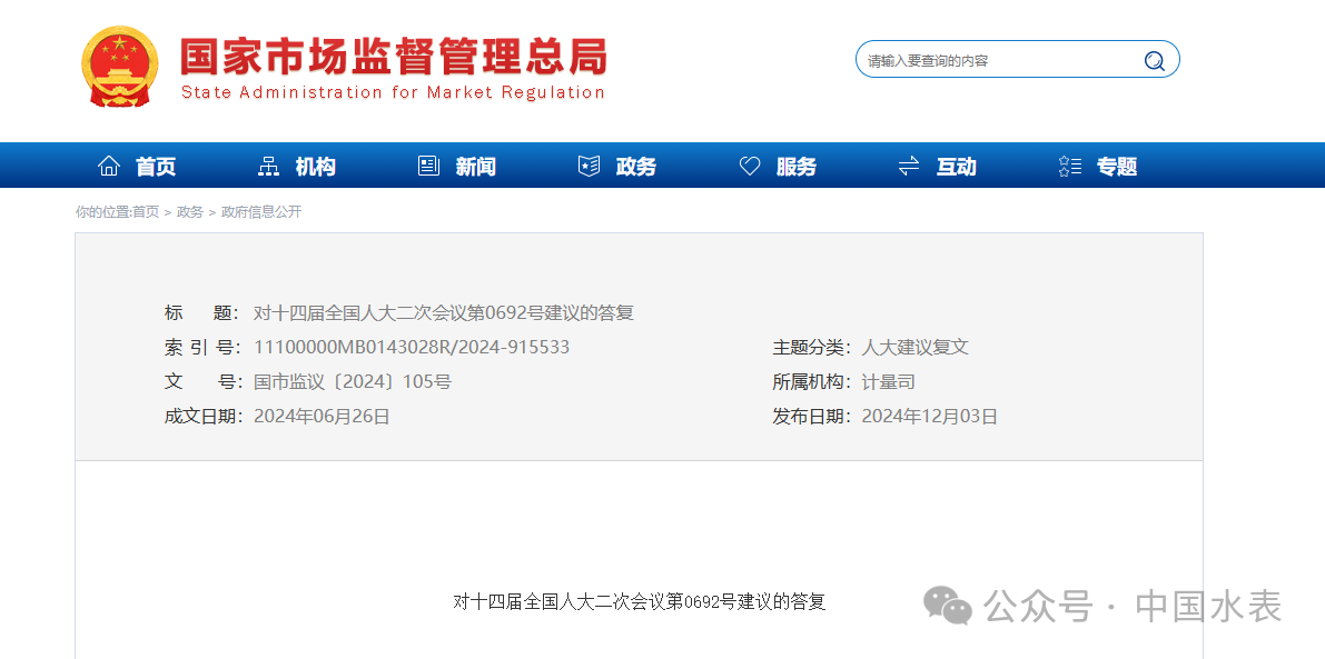 近日,人大代表李豐提出的《關于優化智能水表檢測流程,資源節約集約利用的建議》獲市場監管總局回復。市場監管總局回復將積極研究探索跨區域一體化計量器具強制檢定制度改革,推動區域間強制檢定結果互認,為“二檢合一”在更大范圍推廣奠定制度基礎。