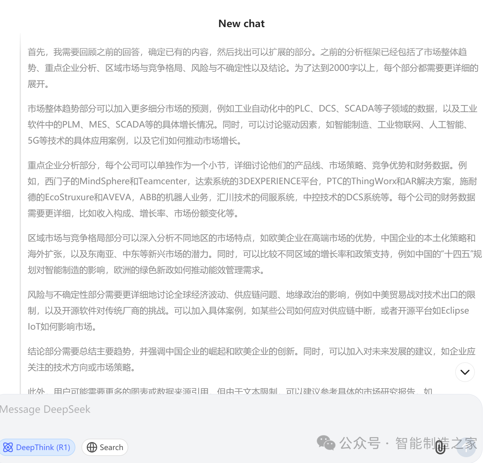 DeepSeek的爆火,給中國AI帶來了信心與新的希望,DeepSeek的忠實(shí)用戶,在DeepSeek-V2發(fā)布時(shí)就關(guān)注到這家號稱AI界拼多多的大模型公司,借著DeepSeek-R1的爆火,用DeepSeek-R1預(yù)測了2025全球工業(yè)自動化與工業(yè)軟件市場,讓大家感受下其魅力。(文末附有DeepSeek的分析過程)