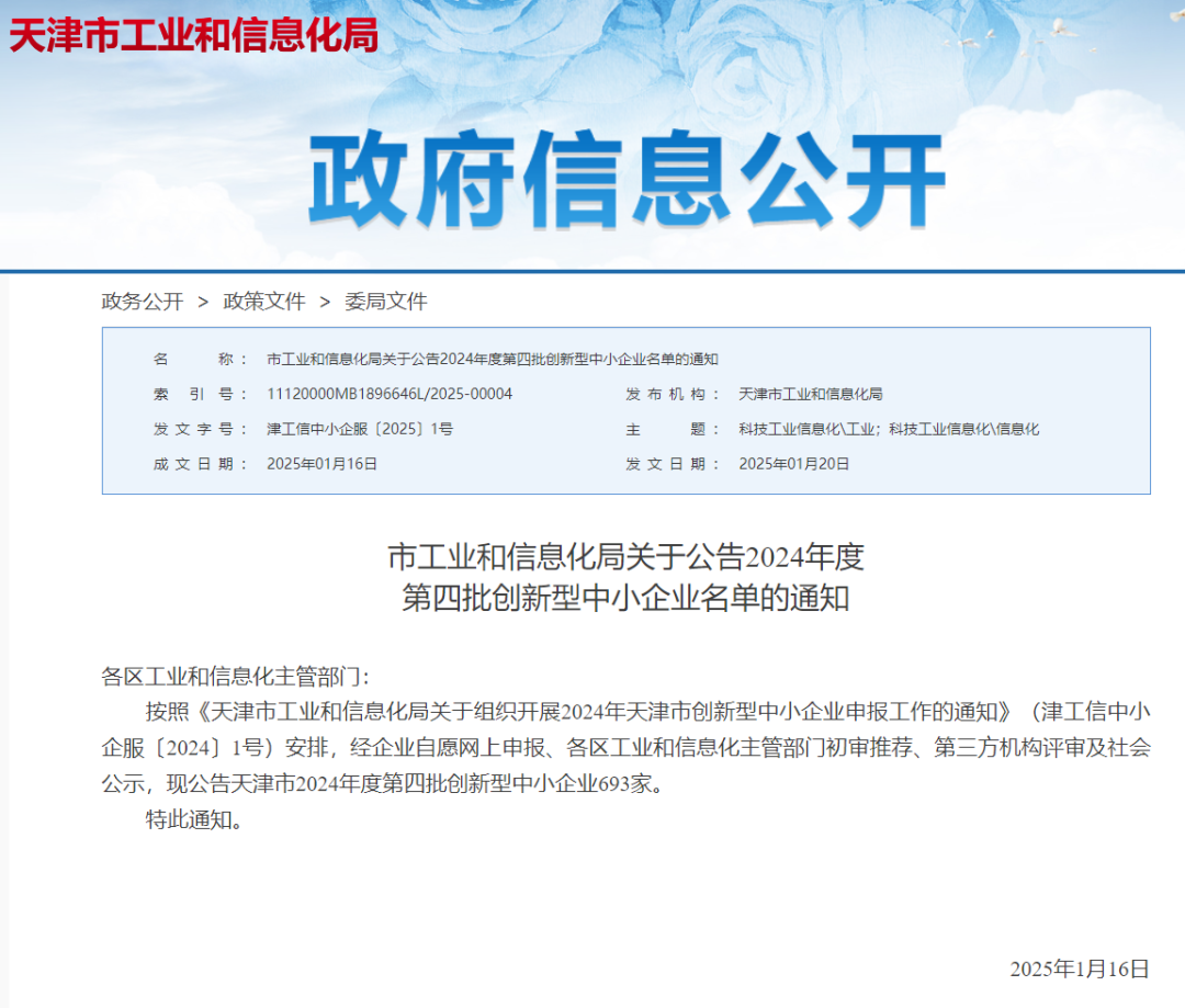 2025年1月20日,天津市經(jīng)濟和信息化局正式發(fā)布了《2024年度第四批創(chuàng)新型中小企業(yè)公告名單》,東西分析儀器(天津)有限公司(簡稱:東西分析)順利通過了“創(chuàng)新型中小企業(yè)”認(rèn)定,成功入選榜單。這不僅是對“東西分析”持續(xù)創(chuàng)新能力的認(rèn)可,也標(biāo)志著其在行業(yè)中的競爭力和影響力的提升。