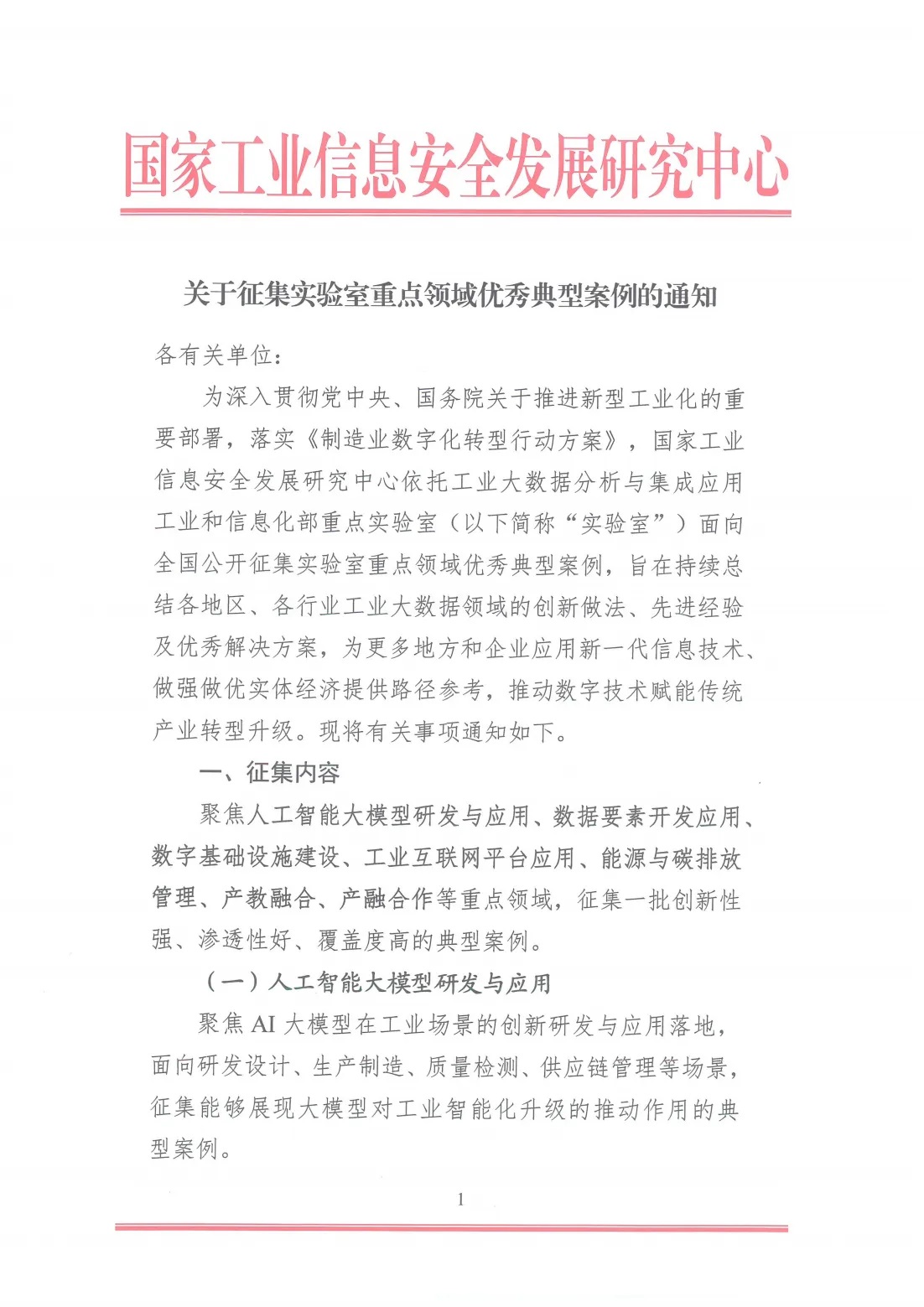 關(guān)于征集實(shí)驗(yàn)室重點(diǎn)領(lǐng)域優(yōu)秀典型案例的通知