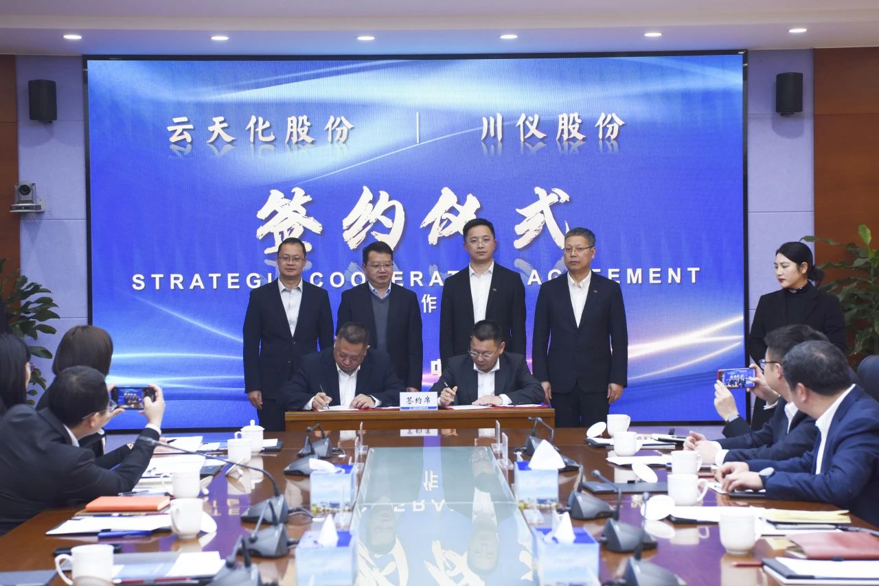 近日,重慶川儀自動(dòng)化股份有限公司(以下簡稱“川儀股份”)黨委副書記、總經(jīng)理吳正國率隊(duì)拜訪云南云天化股份有限公司(以下簡稱“云天化股份”)。云天化股份黨委副書記、總經(jīng)理王宗勇對(duì)吳正國一行的來訪表示歡迎,雙方圍繞各自企業(yè)的基本情況、發(fā)展歷程、業(yè)務(wù)領(lǐng)域等進(jìn)行了深入交流,吳正國、王宗勇分別代表兩家企業(yè)簽署戰(zhàn)略合作協(xié)議。