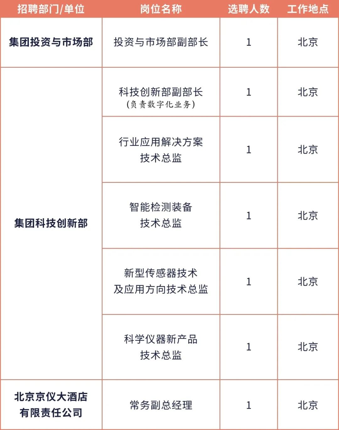 本次選聘崗位共7個,其中京儀集團總部崗位6個,直屬企業(yè)崗位1個。