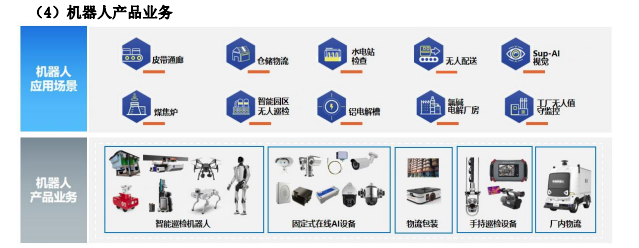 從無到有的征程中,中控技術不斷突破,機器人產業業務涵蓋智能巡檢機器人、固定式在線AI設備、物流包裝設備、手持巡檢設備、廠內物流設備等,并在倉儲物流、水電站檢查、無人配送、Sup-AI視覺、煤焦爐、智能園區無人巡檢等場景中廣泛應用。