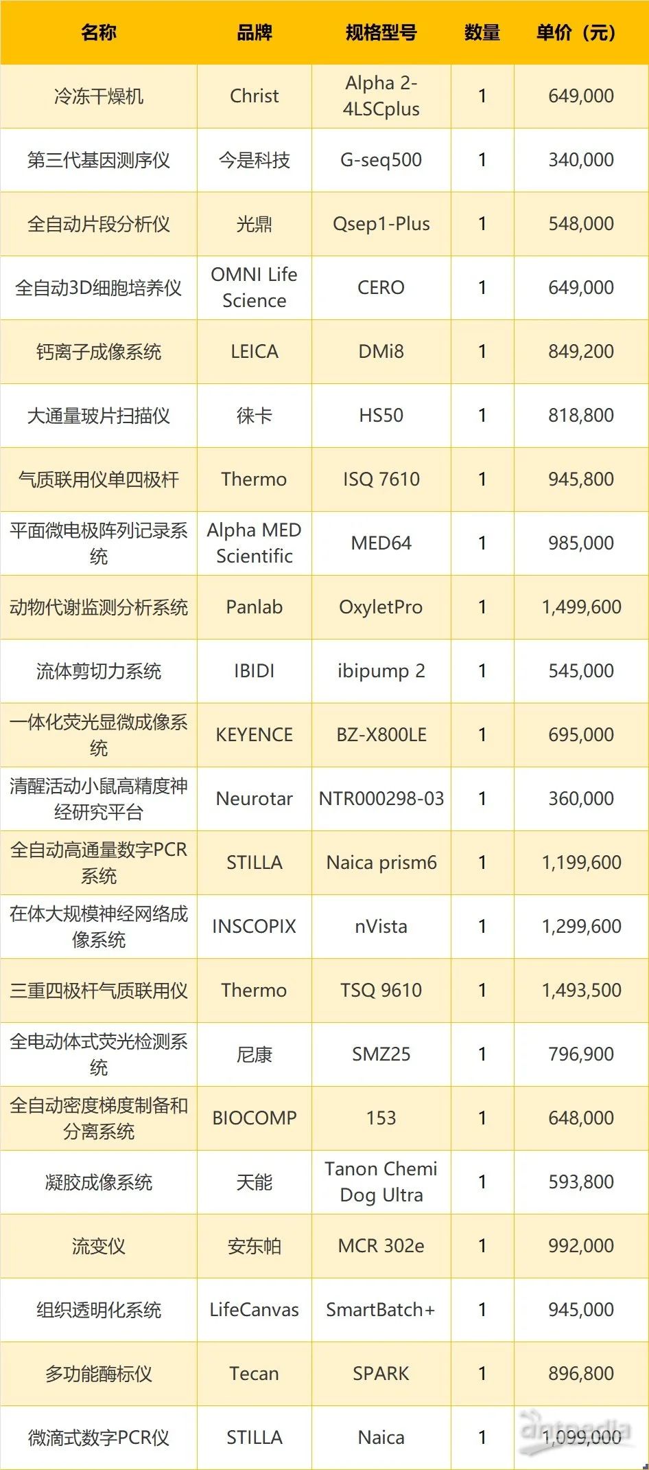 近日,中國醫(yī)科大學就“教育部重大慢病發(fā)病機制及綜合診療醫(yī)藥基礎(chǔ)研究創(chuàng)新中心設(shè)備更新項目”公布一批中標結(jié)果公告,涵蓋基因測序儀、數(shù)字PCR系統(tǒng)、氣質(zhì)聯(lián)用儀等22套設(shè)備中標,中標金額達1884.86萬元。