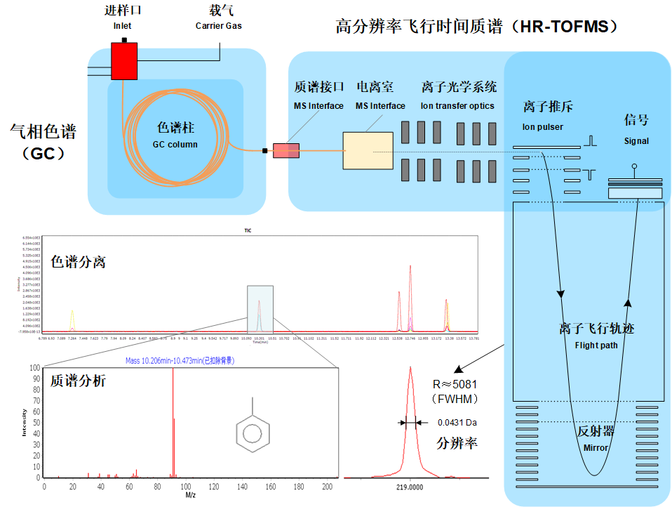 氣相色譜-高分辨飛行時間質譜聯用儀集分離與高精度檢測于一體,搭載可切換離子源(光電離源和EI源),質量分辨率超過5000。該儀器利用氣相色譜高效分離復雜樣品中的組分,再通過高分辨飛行時間質譜實現精準的分子量測定和結構解析??汕袚Q離子源的設計顯著提升了化合物的覆蓋范圍和定性能力,從而能夠對復雜樣品進行準確分析,可廣泛應用于化學、環境等研究領域。