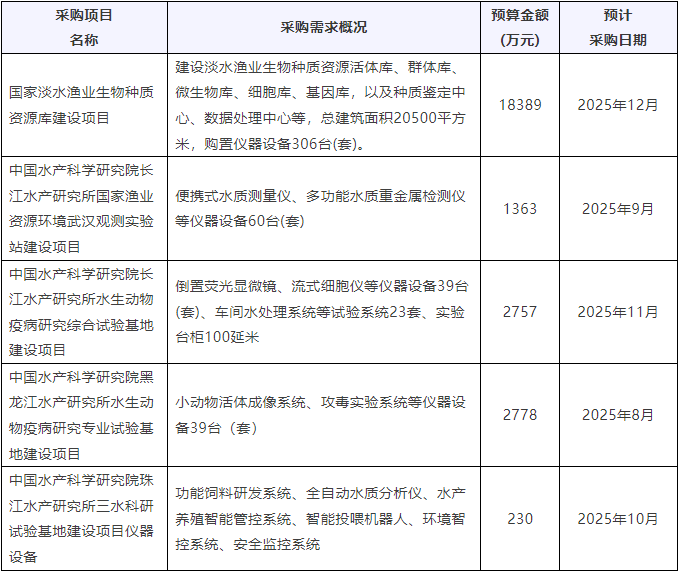 預算超2.5億元!中國水產科學研究院采購大批科研儀
