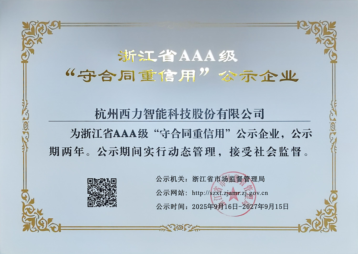 西力科技獲評浙江省AAA級“守合同重信用”企業(yè)