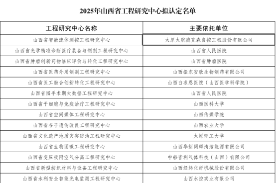 近日,山西省發(fā)展和改革委員會(huì)正式發(fā)布《關(guān)于認(rèn)定2025年山西省工程研究中心的通知》(晉發(fā)改高新發(fā)〔2025303號(hào))文件,由太航德克森申報(bào)的“山西省智能流體測(cè)控工程研究中心”憑借雄厚的技術(shù)實(shí)力、清晰的研發(fā)路徑與卓越的產(chǎn)業(yè)價(jià)值,成功入選,榮獲官方認(rèn)定!