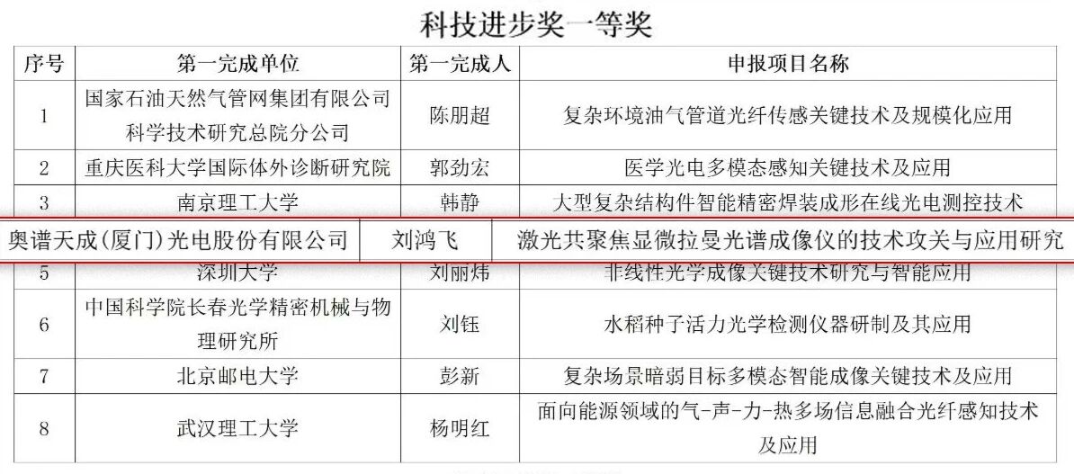 近日,奧譜天成憑借《激光共聚焦顯微拉曼光譜成像儀的技術(shù)攻關(guān)與應(yīng)用研究》,榮獲“中國(guó)光學(xué)工程學(xué)會(huì)科學(xué)技術(shù)獎(jiǎng)”科技進(jìn)步獎(jiǎng)一等獎(jiǎng)。