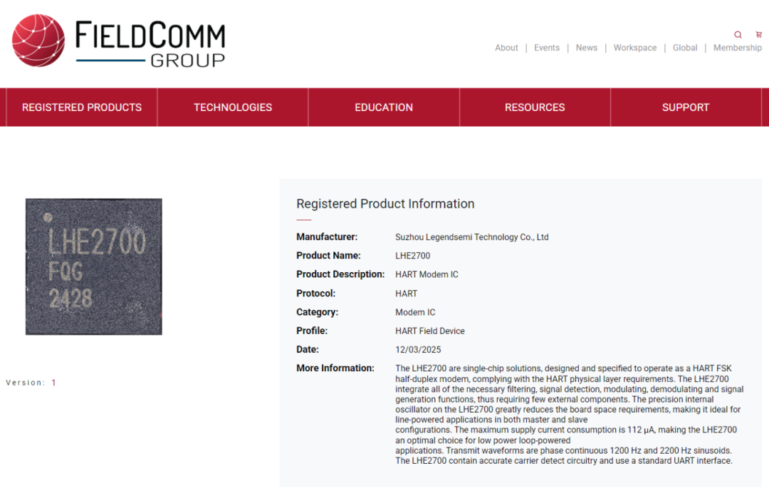 FieldComm Group官網頁面鏈接(點擊底部“閱讀原文”直達頁面):https://www.fieldcommgroup.org/registered-products/2ee60d01-b289-f011-b4cc-6045bd04d6a6