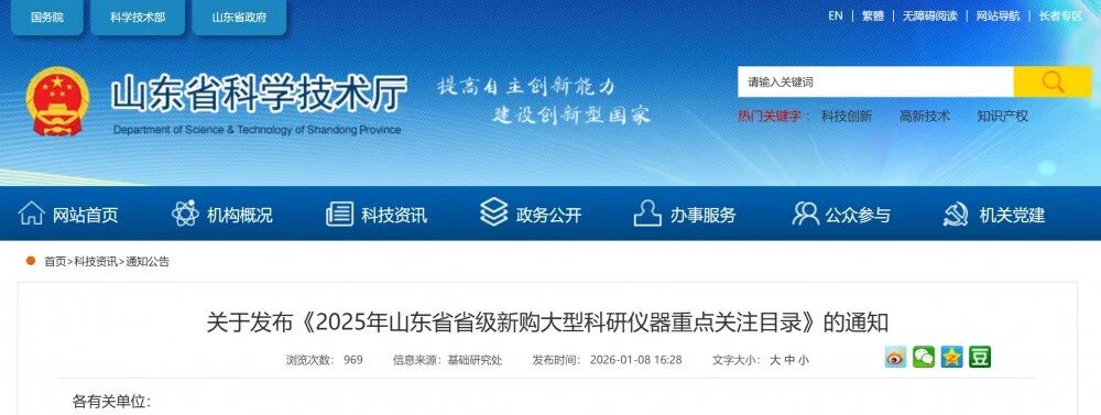 關(guān)于發(fā)布《2025年山東省省級(jí)新購(gòu)大型科研儀器重點(diǎn)關(guān)注目錄》的通知