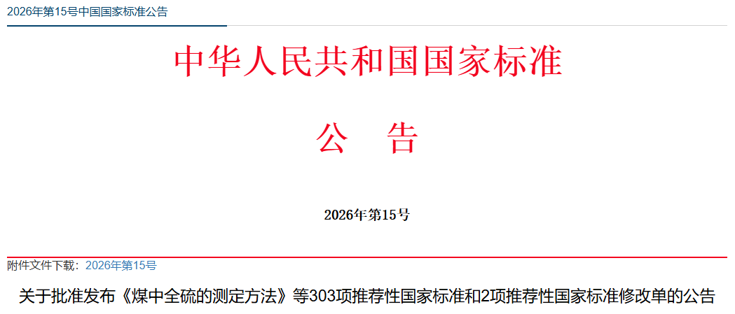 關(guān)于批準(zhǔn)發(fā)布《煤中全硫的測(cè)定方法》等303項(xiàng)推薦性國(guó)家標(biāo)準(zhǔn)和2項(xiàng)推薦性國(guó)家標(biāo)準(zhǔn)修改單的公告