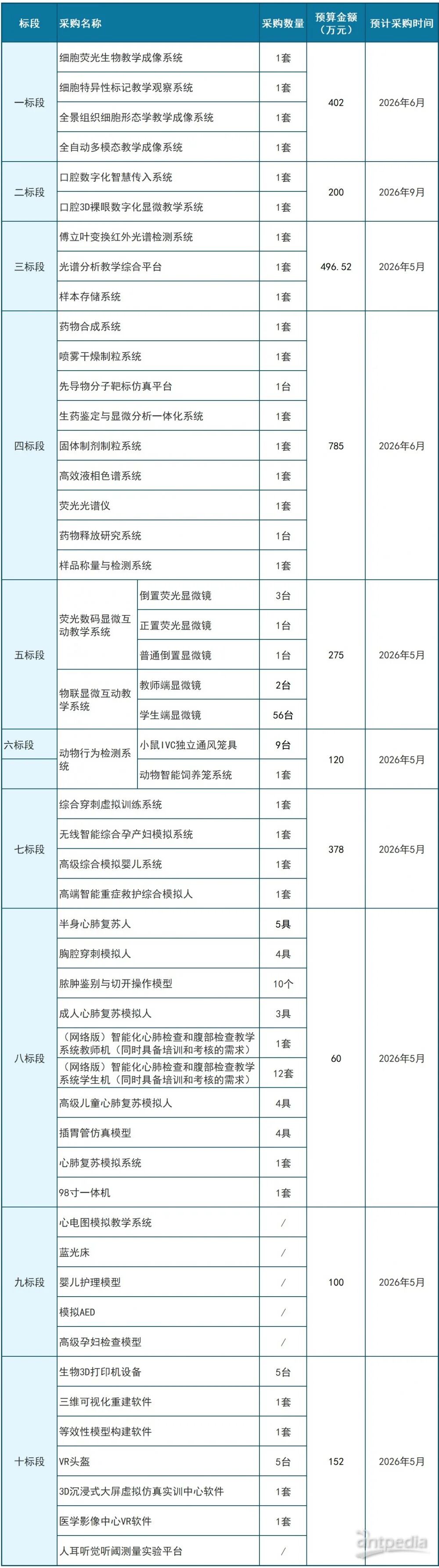近日,寧夏醫科大學發布教學科研儀器設備更新項目政府采購意向,項目分十個標段,總預算達2968.52萬元,預計于今年5-9月分批完成采購,采購內容覆蓋醫學多學科教學科研所需相關設備。