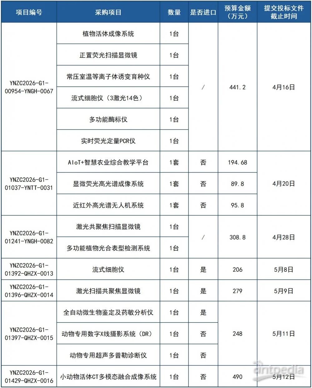 為全面提升教學科研水平,助力高水平農業大學建設,云南農業大學近日正式公布重大教學科研儀器設備更新招標項目,涉及園林園藝學院、理學院及動物醫學院等多個學院。本次招標涵蓋植物活體成像系統、激光共聚焦掃描顯微鏡、小動物活體CT多模態融合成像系統、等一批尖端科研設備,總預算金額超2353萬元。