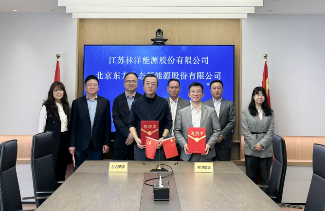 4月16日,江蘇林洋能源股份有限公司(以下簡稱“林洋能源”)與北京東方生態(tài)新能源股份有限公司(以下簡稱“東方新能”)在北京正式簽署戰(zhàn)略合作框架協(xié)議。東方新能副總經理兼董事會秘書于旸,林洋能源副總裁兼董事會秘書崔東旭等共同出席簽約儀式。