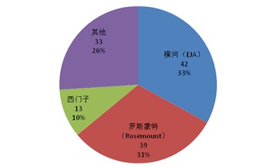 我國工業(yè)過程控制變送器市場過去幾年發(fā)展較快,但整體上國產(chǎn)化率和國產(chǎn)供應(yīng)檔次低,高端供給基本上由橫河(EJA)、羅斯蒙特(Rosemount)、西門子等國外公司把持,其中排名前兩位的橫河(EJA)和羅斯蒙特(Rosemount)就合計占據(jù)了64%的市場份額,本土廠商市場份額很低。